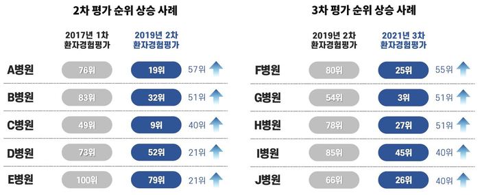 세마 측에 따르면, 병원의 환자경험 개선을 위해 개발된 PEI솔루션을 이용하면 설문설계, 조사진행, 데이터키인, 보고서 작성 등이 모두 실시간 자동으로 진행돼 병원의 환자경험 담당자는 다른 업무 부담 없이 개선활동에만 집중할 수 있다. 환자 응답을 실시간 보고서로 보여주기 때문에 피드백이 빠르다는 장점도 있다. 또한, 환자가 작성하는 수만 건의 후기를 AI가 부서별로 자동 분류해주기 때문에 병원에서 부서별 환자 후기 개선활동에 효율적이라는 입장이다. 실제 올해 발표된 심평원 3차 환자경험평가 결과를 보면 1, 2차 평가 대비 PEI솔루션 이용 병원의 환자경험평가 순위가 많이 상승한 것을 확인할 수 있다.